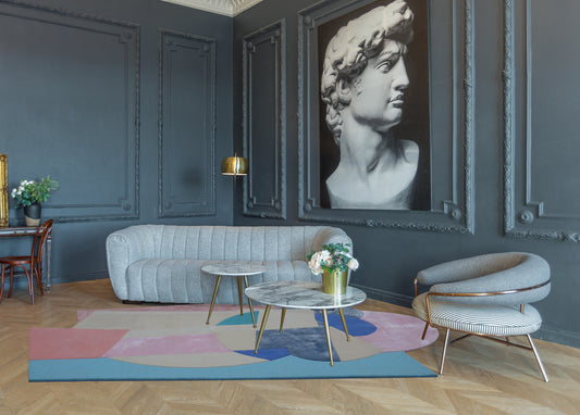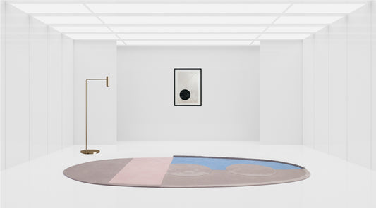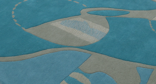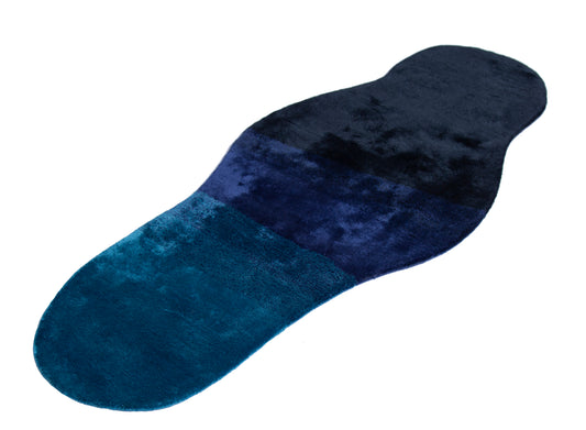 Blue Water Rug, an illusionary design with its shape inspired by the artworks of French artist Georges Valmier, giving a fun and mysterious vibe.